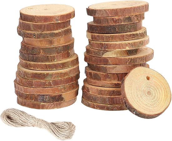 Supvox 50pcs Rondin De Bois Rondelle De Bois Tranche De Bois Naturel Brut 4 5cm Avec Trou Et Ficelle 10m Pour Diy Artisanat Mariage Centre De Table Amazon Fr Cuisine Maison