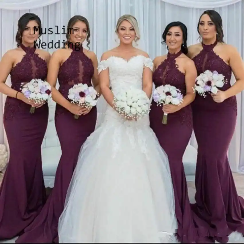 Sexy Grape Meerjungfrau Brautjungfer Kleider Halter Neck Spitze Satin Plus Grosse Bohmischen Brautjungfer Kleid 2020 Gunstige Hochzeit Gast Kleider Aliexpress