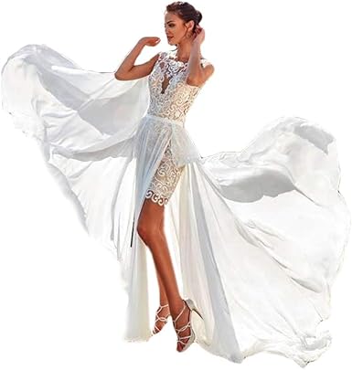 Cy Bohemian Short A Line Wedding Dresses With Detachable Skirt Lace Appliques Beach Bridal Gowns Plus Size At Amazon Women S Clothing Store