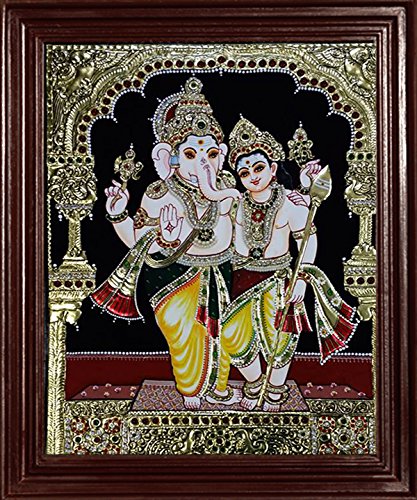 MyAngadi Lord Ganesha and Murugan Tanjore Painting - 22 Carat Gold Foil (53x41 cm): Amazon.in: Home & Kitchen