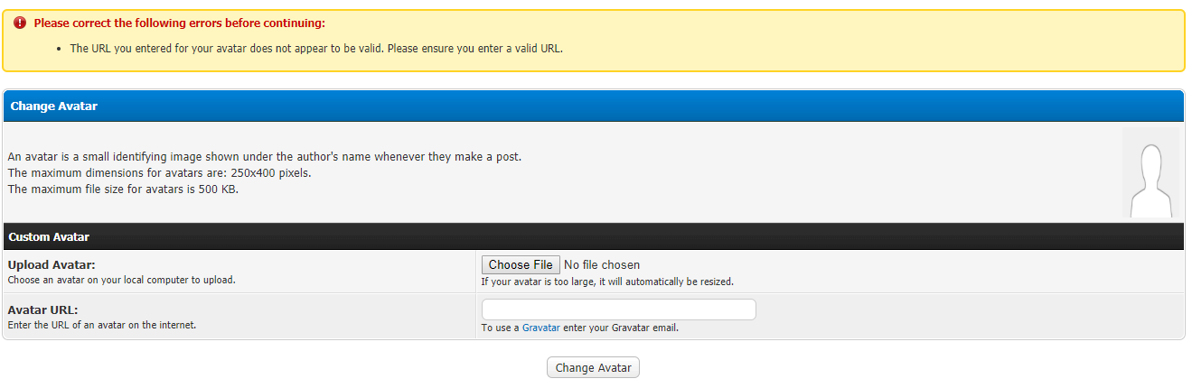 Avatar URL Error ? Unsure how to fix.