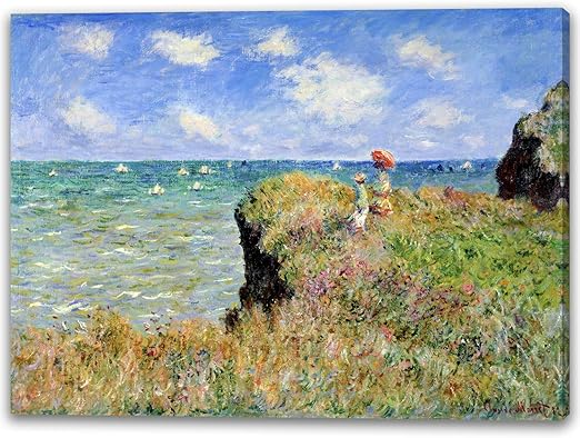 Amazon.co.jp : クロード・モネ『プールヴィルの断崖の上の散歩』アートパネル 油絵風景画 複製名画 MDF木枠 アートポスター 印象派 モダンアート 壁掛け絵画 現代 壁飾り ギフトボックス付き 装飾画(30x40cm) : ホーム&キッチン