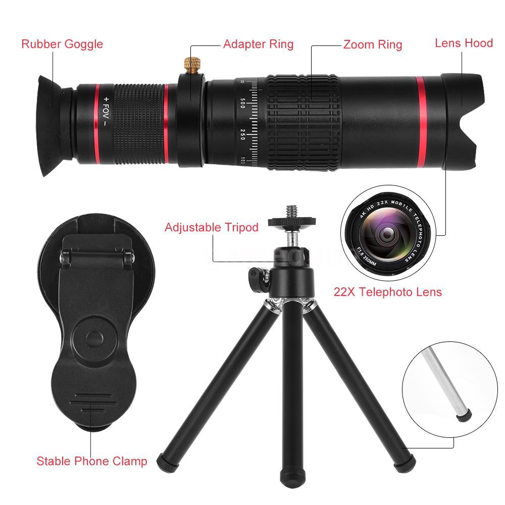 Amazon.com: HD 4K 22x Zoom Mobile Phone Telescope Lens Telephoto External Smartphone Camera Lenses: Home & Kitchen