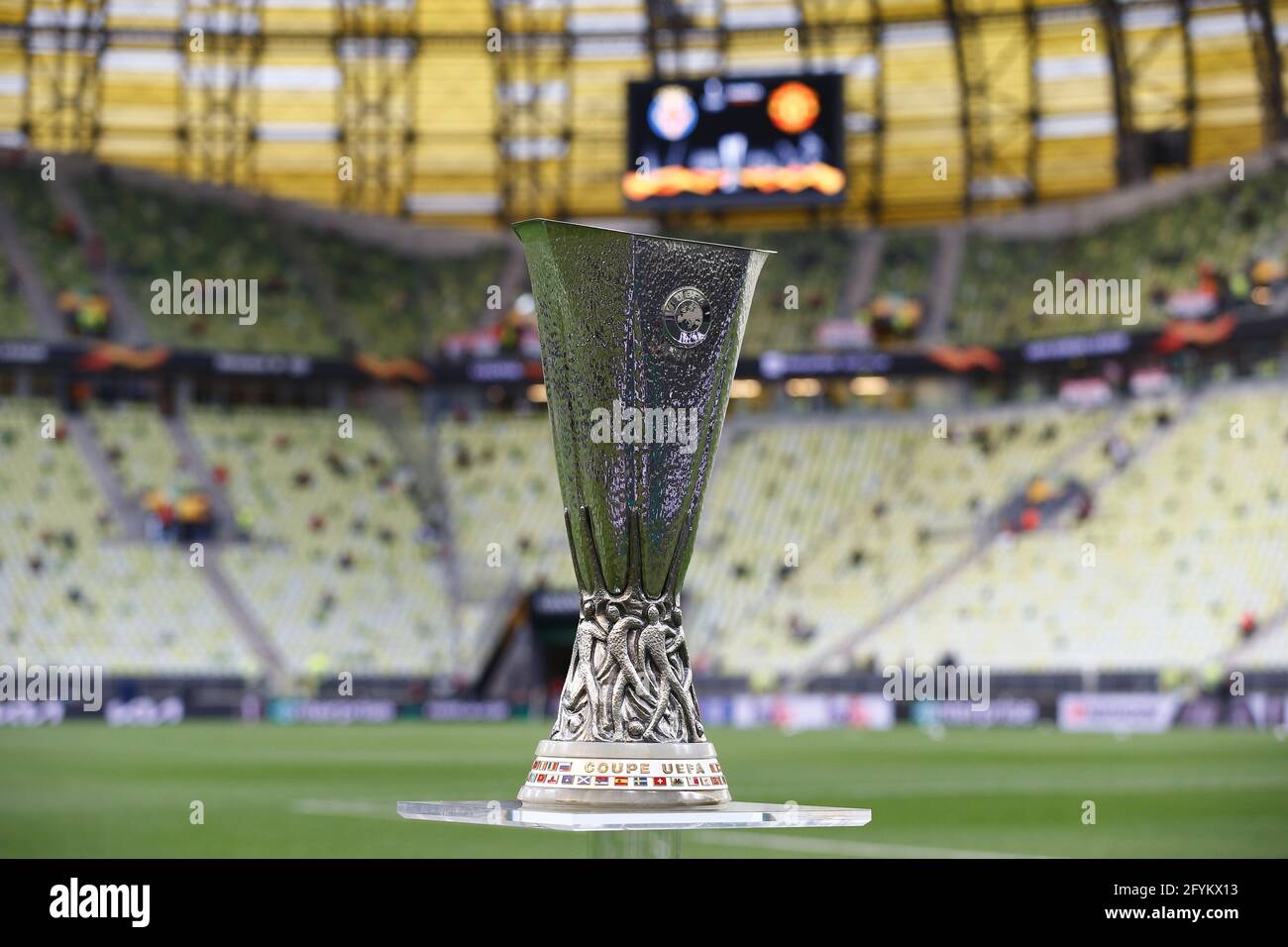 Gdansk Poland 26th May 2021 View Of The Europa League Trophy During The Uefa Europa League Final 2021 Match Cup Awarding Ceremony Between Villarreal Cf And Manchester United At Gdansk Arena Final Score